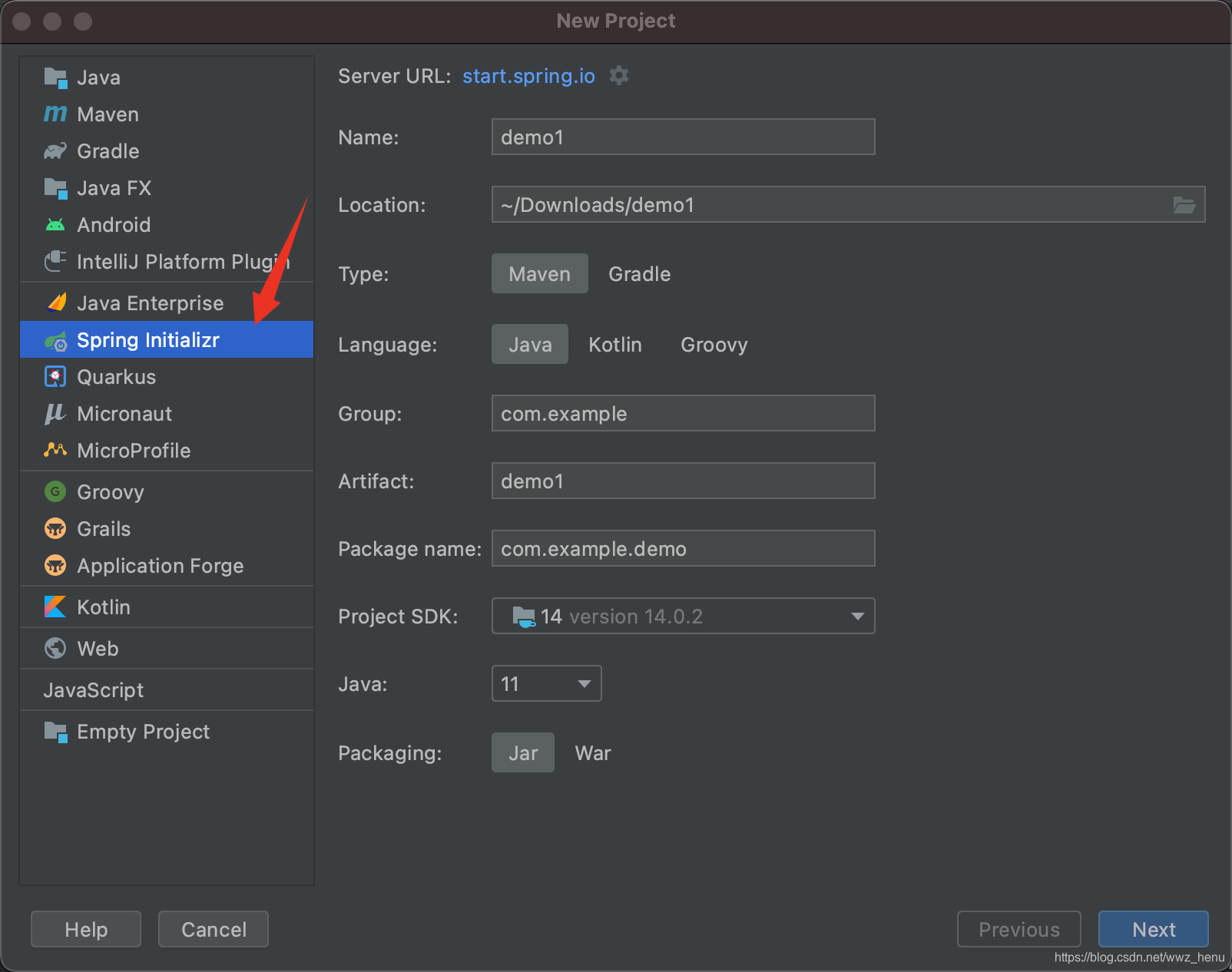 新建项目,选择 Spring Initializr