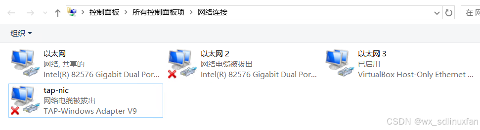 - 完成后 ,WINDOWS自动为tap-nic网卡设置了网卡地址: 192.168.137.1