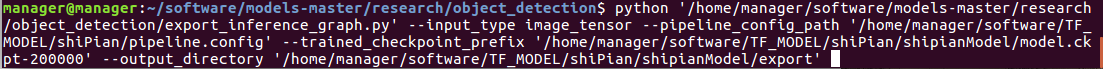 利用脚本文件export_inference_graph.py文件,导出模型,包括.pb文件 graph.pbtxt。一共四个参数分别指: