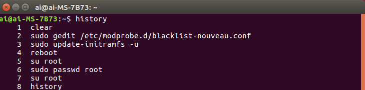 利用命令“history” 查看自己的操作步骤