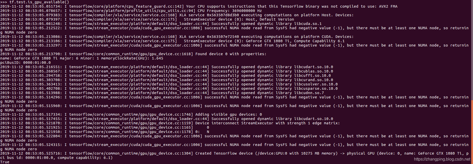 测试针对TensorFlow是否有可用的GPU