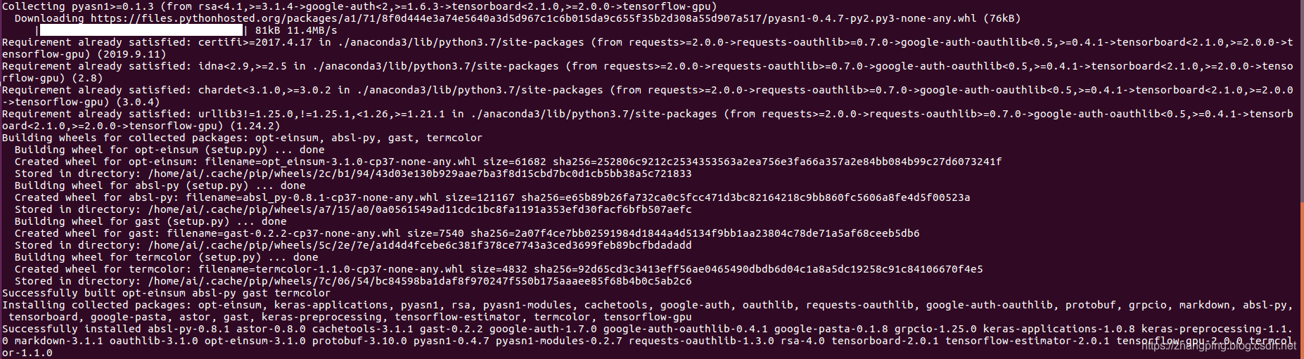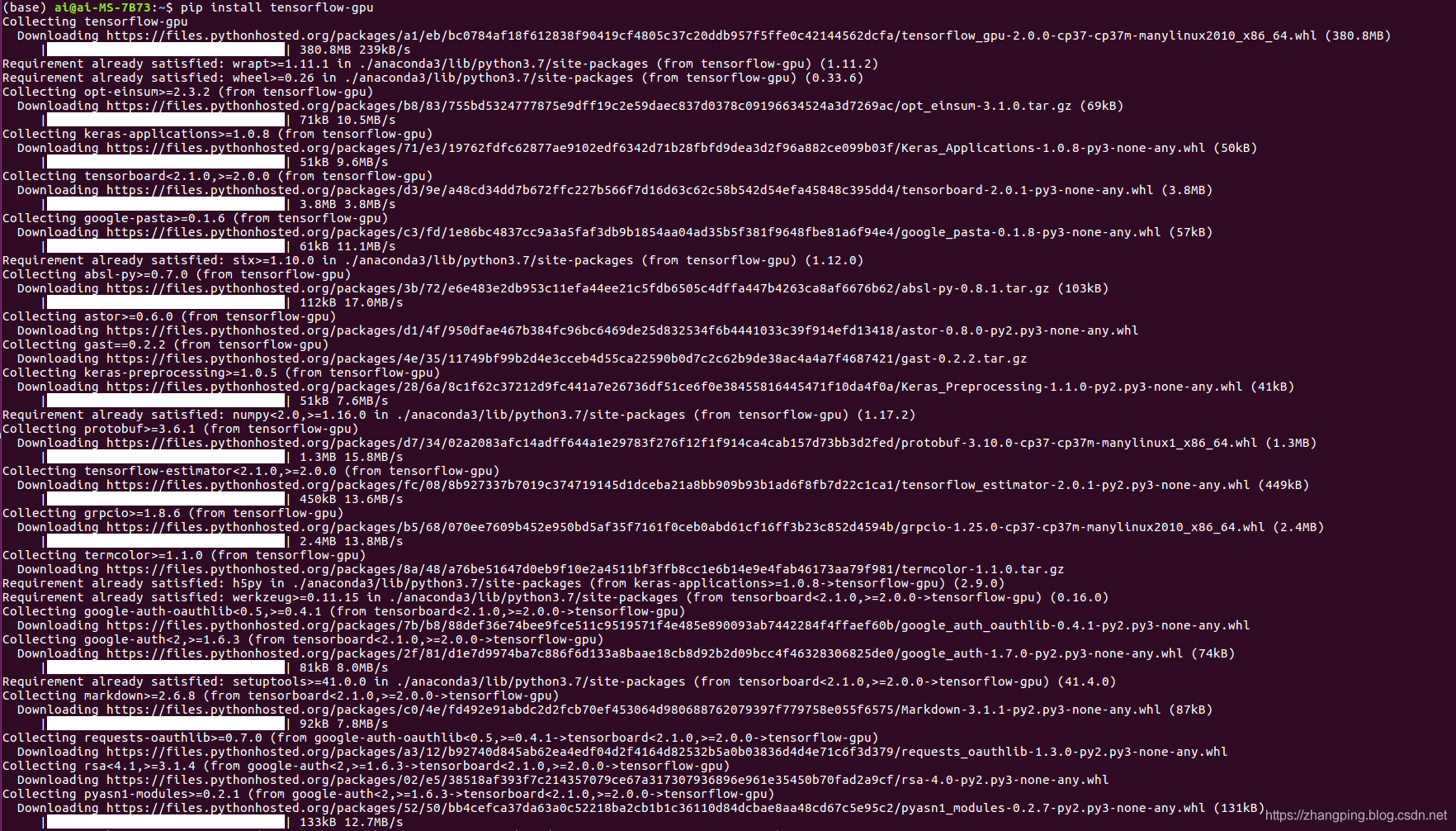 pip安装TensorFlow,因为目前pip安装支持的是CUDA10.0版本编译的