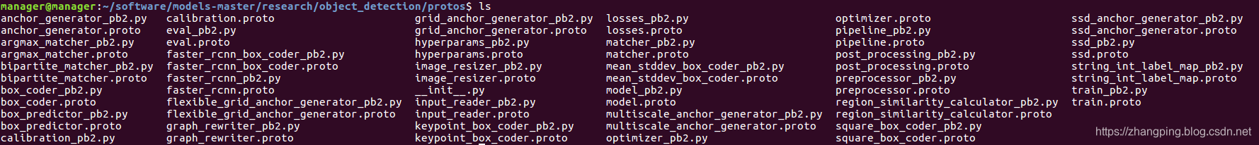 运行结束后,在文件夹 /models_master/research/object_detection/protos下的内容如下,多了对应的.py文件: