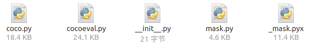 在没有执行'make'命令之前,在文件夹pycocotools下的内容如下:
