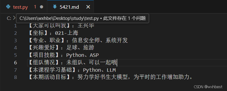 5、然后在class分支中建立题目要求的uid.md,我是5421.md—>