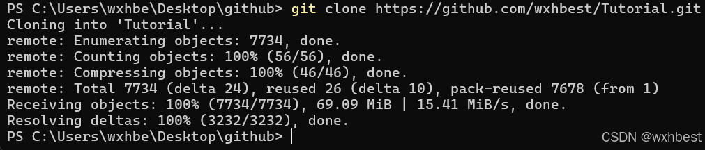 3、本地通过git clone命令拉取自己的仓库(fork的那个)—>