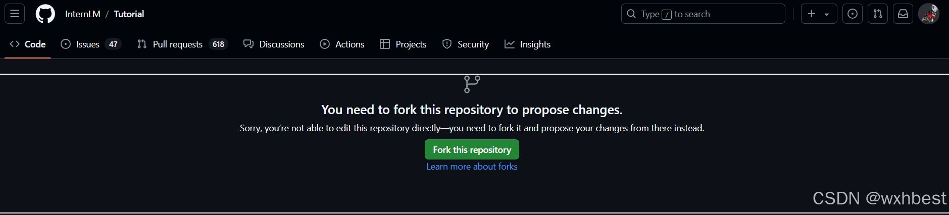 发现有一个报错,提示需要 fork 此存储库才能提出更改。需要复刻它并从那里提出更改。
