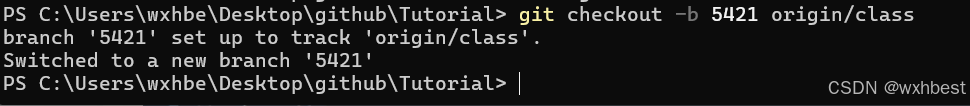 4、通过git checkout -b 5421 origin/class切换自己的分支,这个5421是我自己的ID,随便起啥名,记住就行—>
