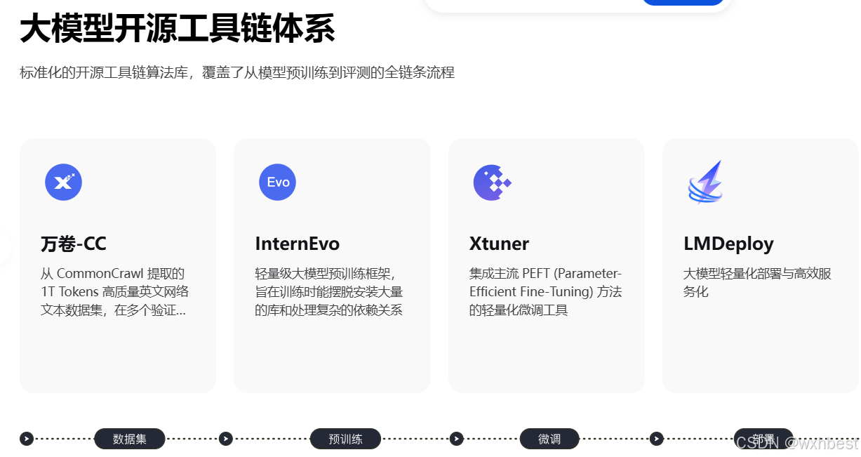 首先,书生大模型全链路开源开放体系的核心在于其“全链路”特性。这一体系涵盖了从数据集构建、模型预训练、模型微调、部署到模型评测和应用的全过程,实现了人工智能技术从研发到应用的各个环节的全面开放。这一开放不仅包括代码和算法的公开,还包括数据集、训练环境等资源的共享,为全球人工智能研究者提供了丰富的研究素材和工具。