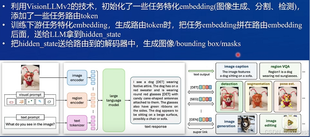 - 端到端训练:LLaVA 采用端到端的方式微调视觉特征提取模块和语言模型,更紧密地结合视觉和语言模态。