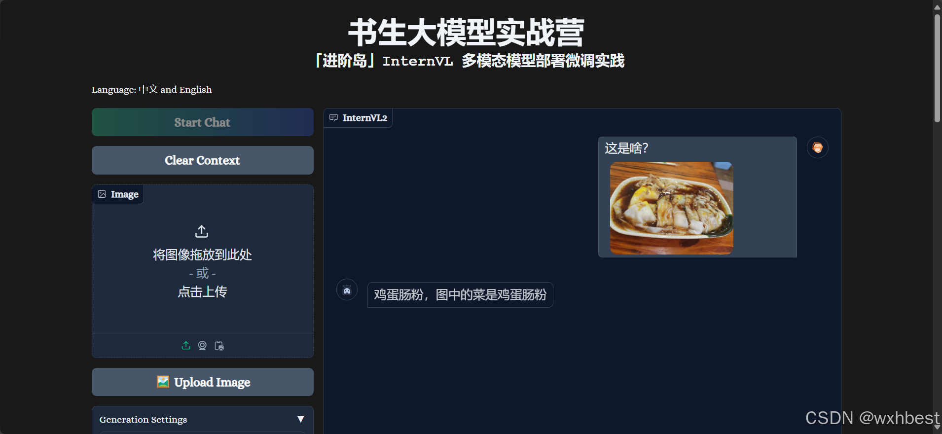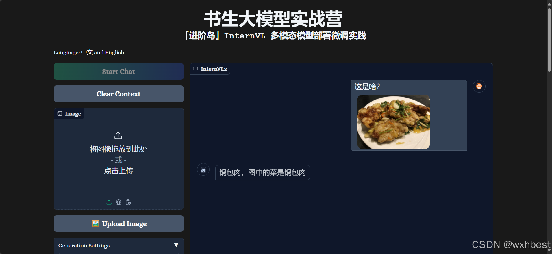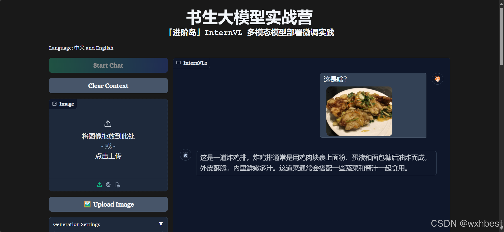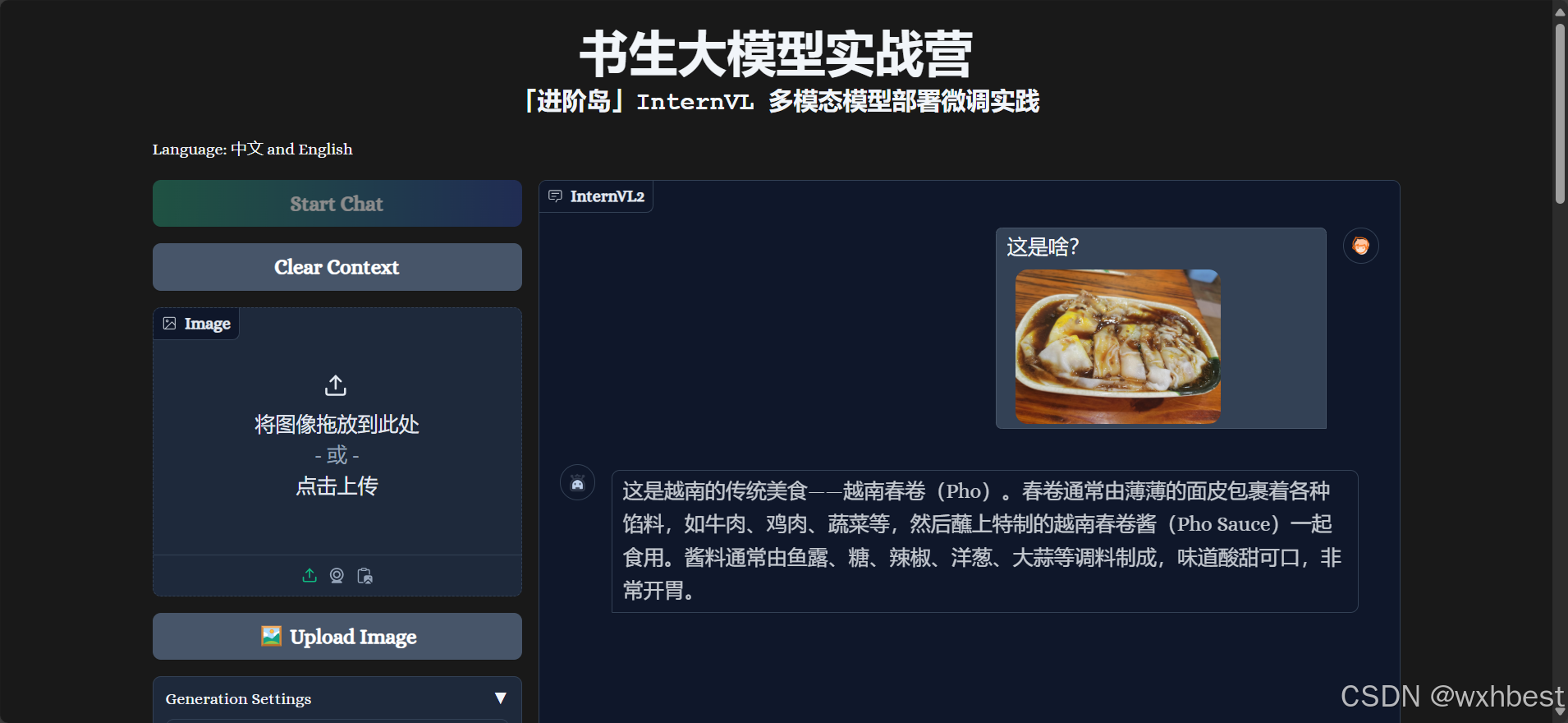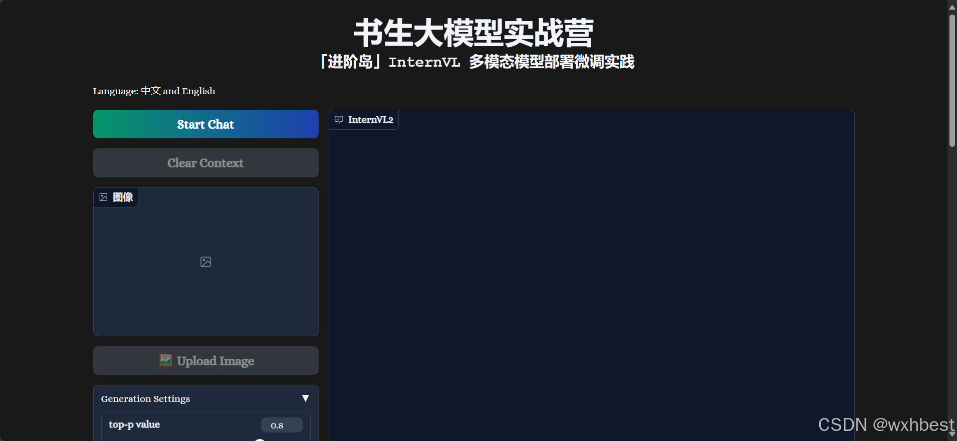 3、了解LMDeploy部署多模态大模型的核心代码,并运行提供的gradio代码,在UI界面体验与InternVL2的对话。