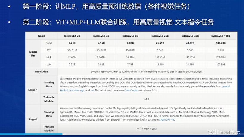 - MLP 模块在 InternVL2 的早期阶段单独训练,主要目的是为视觉模态与语言模态之间建立初步连接。