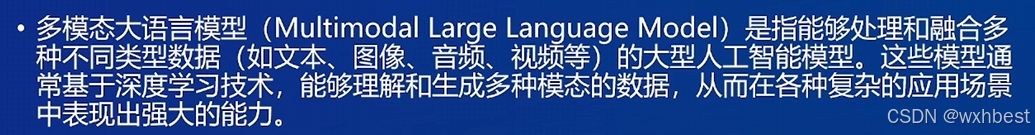 多模态大模型是指能够处理和理解多种类型数据(如文本、图像、声音等)的人工智能模型。这些模型的目的是整合不同模态的信息,实现跨模态的理解与生成,以获得更丰富的理解和更好的性能。