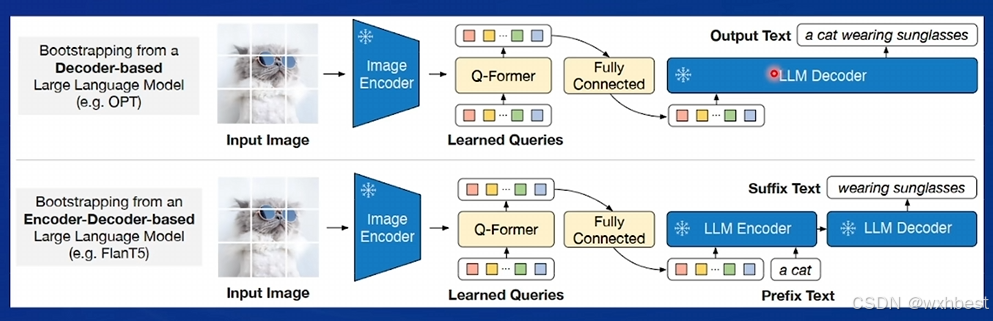 - 灵活性:Q-Former模块作为一个中介层,可以适配不同的视觉编码器和语言模型。