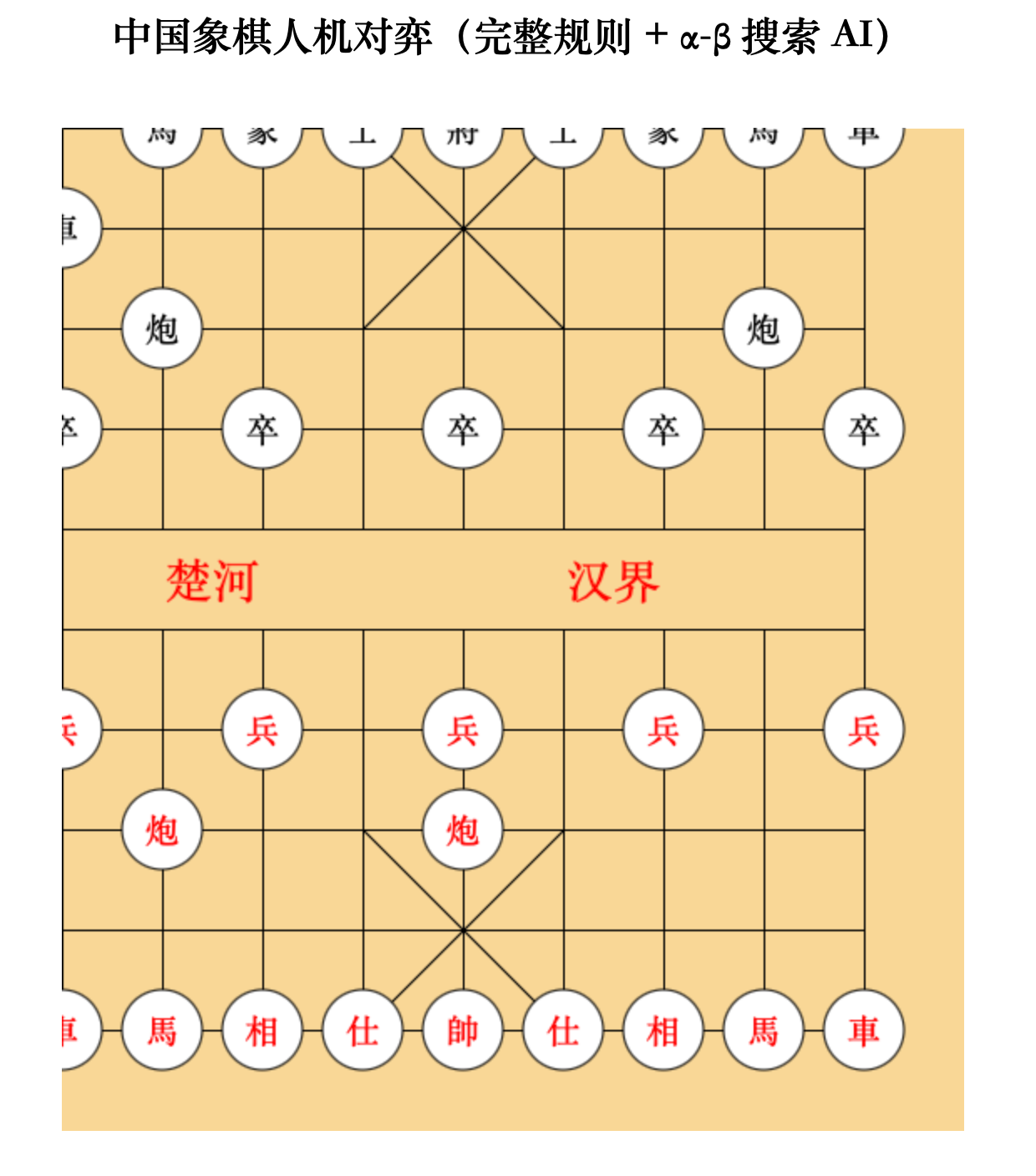 <h2>中国象棋人机对弈(完整规则 + α-β 搜索 AI)</h2>