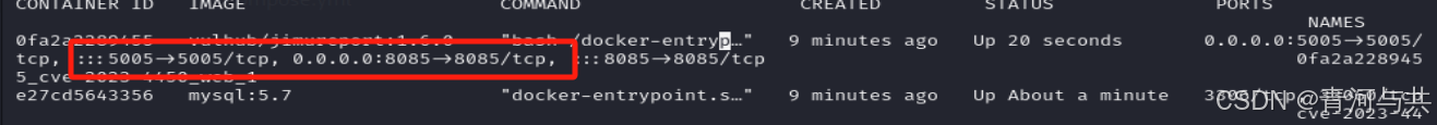 步骤一环境拉取:先在kali中拉取docker-compose,注意需要占用kali的5005和8085以及3306端口,端口占用会导致拉取失败