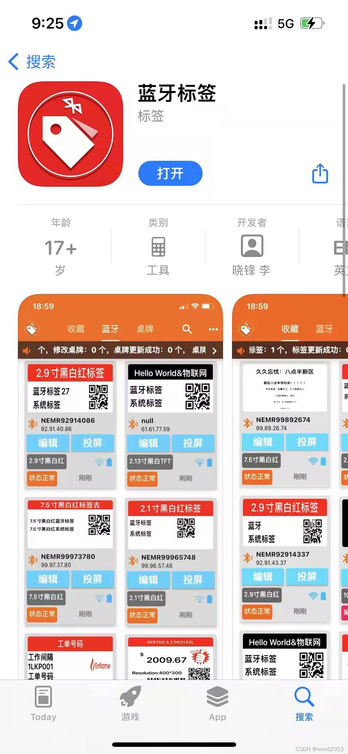 基于更便利的应用,皮克的小伙伴们开发了使用APP直接可以操作的应用,以前只支持安卓版本,但是市面上确实还有不少是苹果手机的用户,所以我们经历了好一段时间的准备,终于在2022年的第一天上线苹果商店,补充了这方面的不足,直接在APP store里面搜索“蓝牙标签”就可以找到这个应用,为伙伴们增值