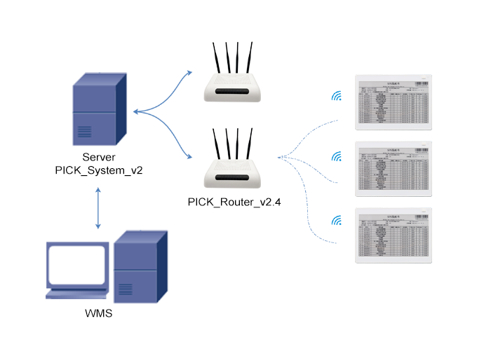 电子标签拣货系统就是通过PC机或扫描枪发送指令,通过路由器转发,控制电子标签上的LED灯或屏幕指引拣货人员准确,快速地到指定的位置拣取相应的货物。