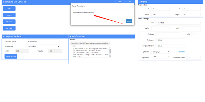 进入模板配置界面: