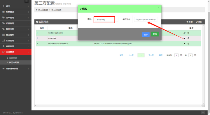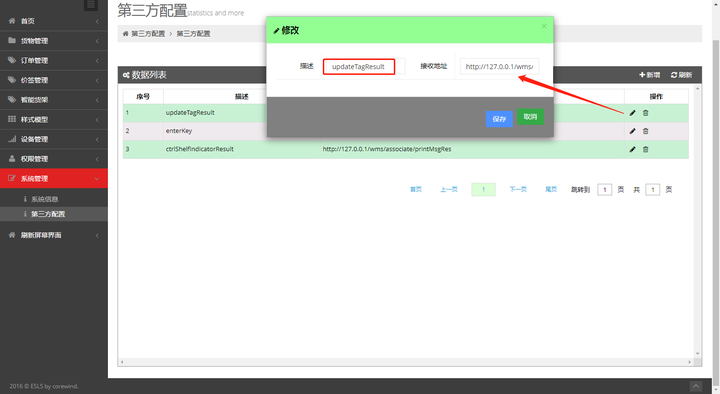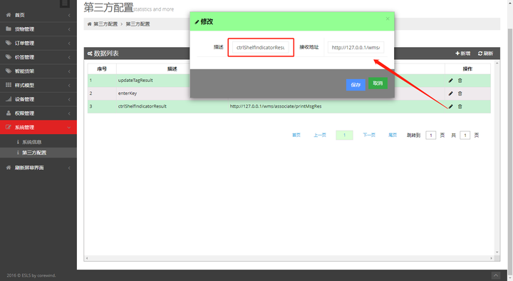 修改ctrlShelfIndicatorResult的接收地址为第三方的回调接口地址: