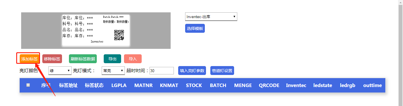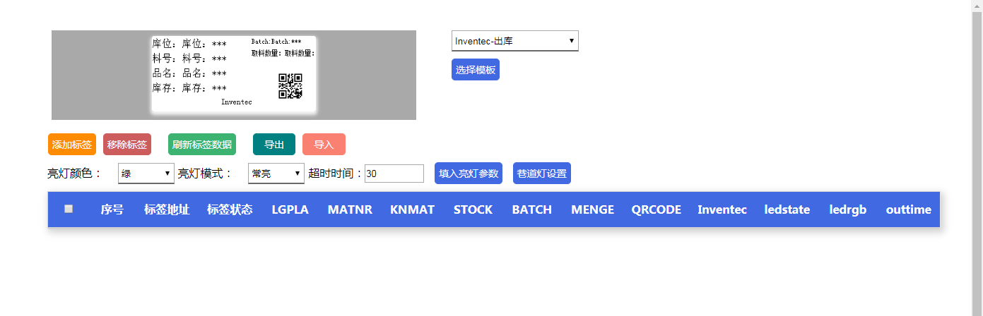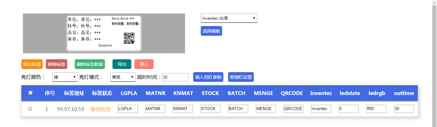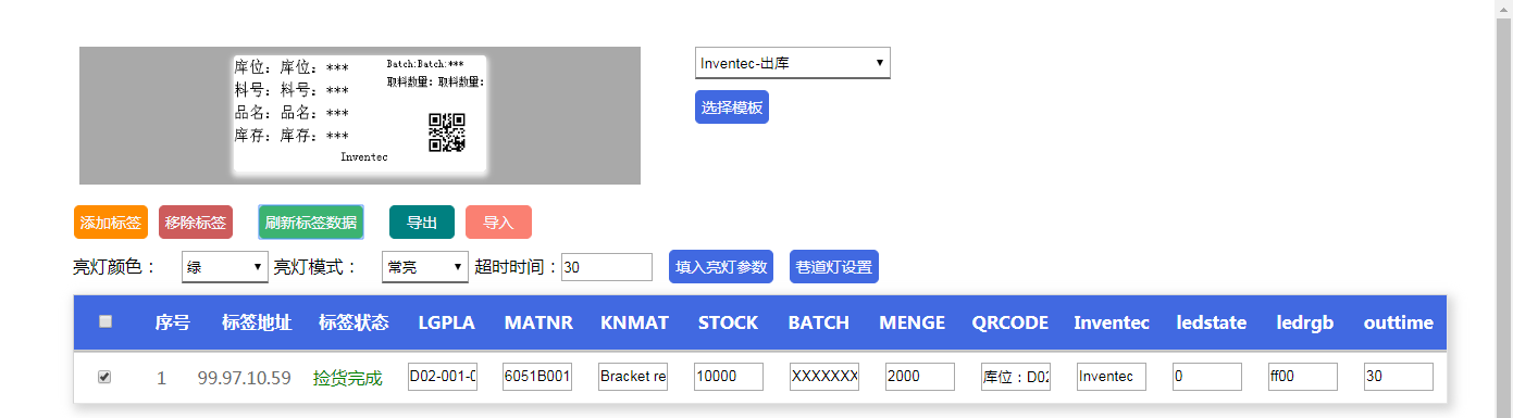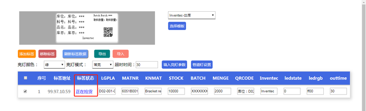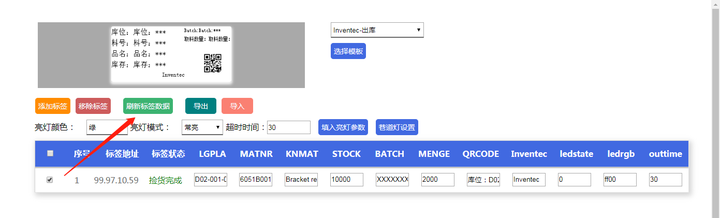 修改模板字段的参数内容,先单击“填入亮灯参数按钮”,然后点击“刷新标签数据”: