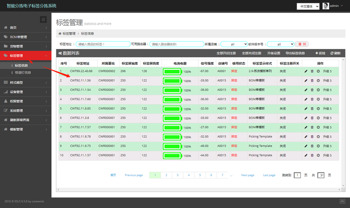 进入“标签管理”->“标签信息”, 可以查看已经成功注册到系统的标签的信息: