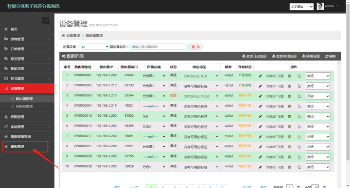 进入模板管理界面