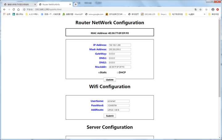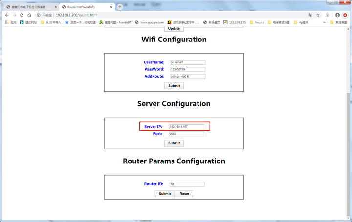 完成1.3.2.1之后V1.4基站集成了电子标签管理系统,默认IP:192.168.1.200,