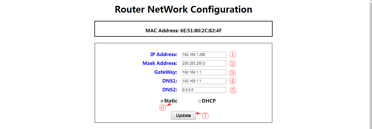 根据自己的网络环境设置基站的ip地址,可以设置DHCP或者Static模式。设置完成点击UpDate保存设置,设置完成界面会提示设置成功,重启基站生效。