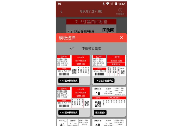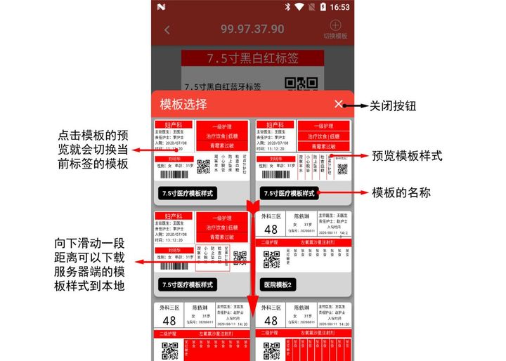如果想对当前的标签进行切换模板,可以点击编辑界面右上角的【切换模板】按钮,可以调出模板选择界面。如下图所示。模板是可以上下滑动查看。点击模板,就会切换当前的模板。