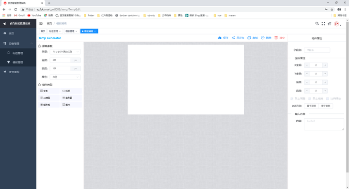 登录之后,点击【设备管理】>【新增】就可以看到如下界面,这个就是可视化模板编辑界面。