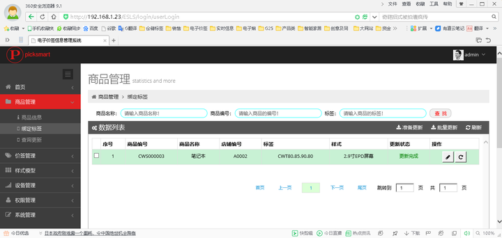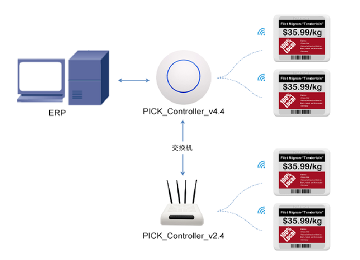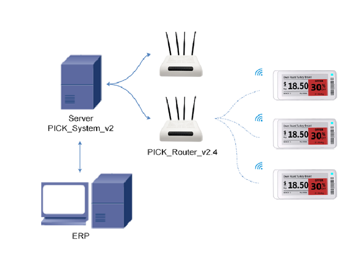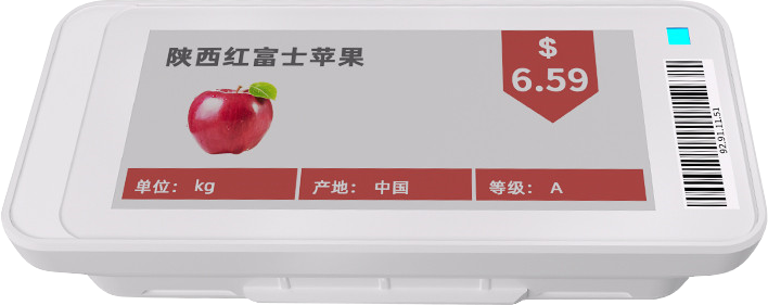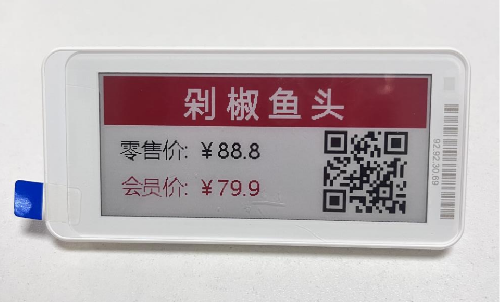 电子货架标签系统(ESLs),是一种放置在货架上、可替代传统纸质价格标签的电子显示装置,每一个电子货架标签通过有线或者无线网络与商场计算机数据库相连,并将最新的商品价格通过电子货架标签上的屏显示出来。