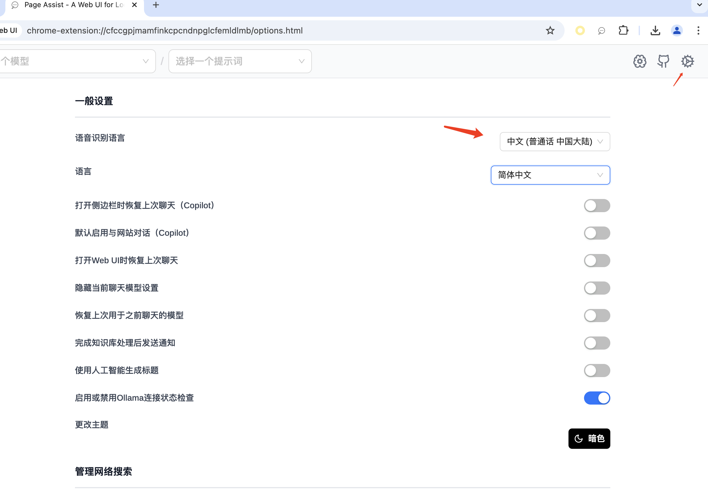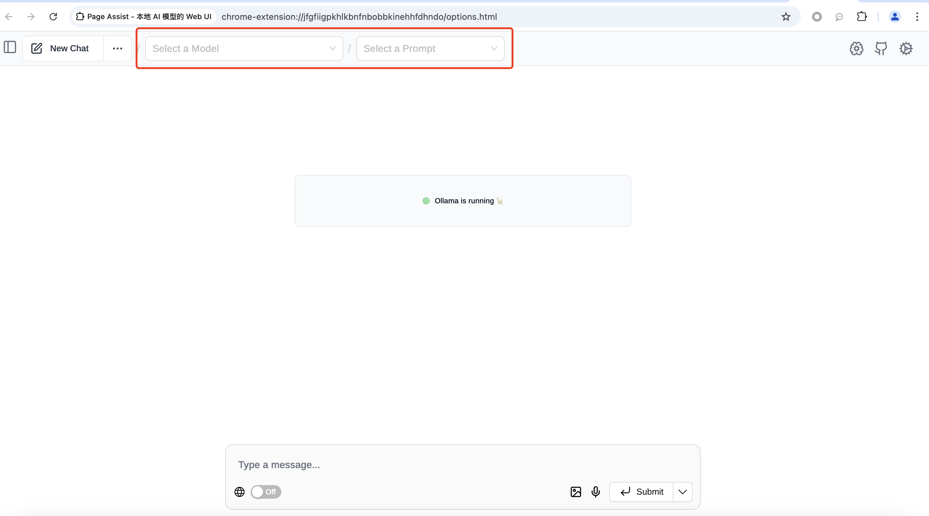 3 下面我们就可以打开Chrome Page Assist ,选择模型开始使用😄。