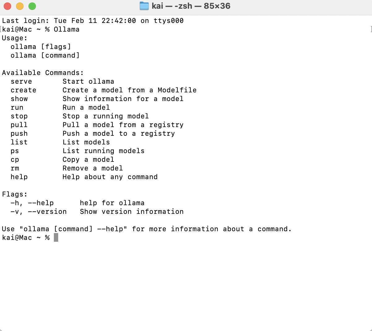 好了,接下来直接运行Ollama,然后进入到终端窗口↓
