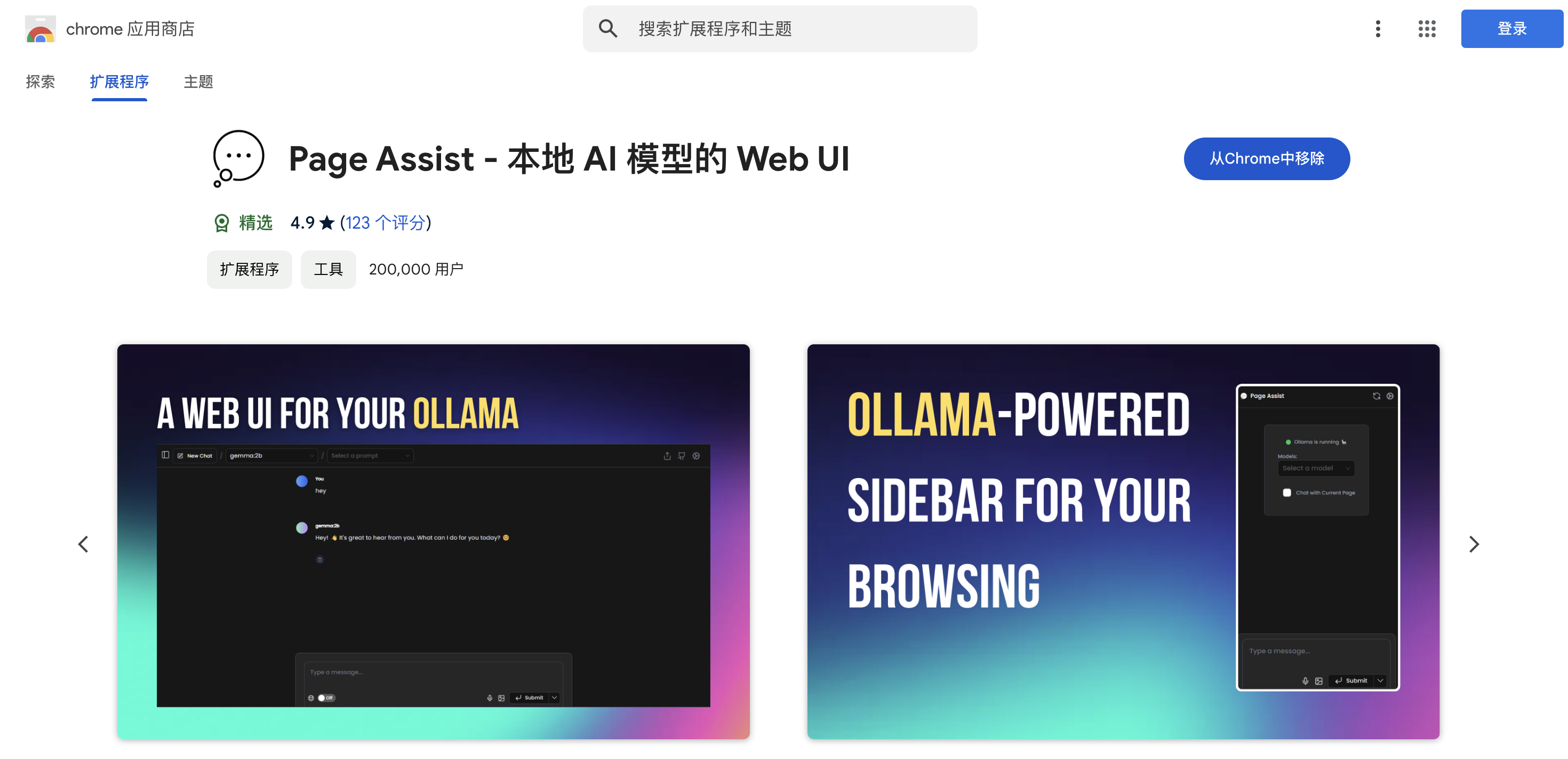 2 Chrome浏览器插件 Page Assist,这是个浏览器插件,提供本地大模型的图形化管理和对话界面。(当然也有很多其他工具比如Open WebUI,但本次给大家直接提供PageAssist插件,有Chrome浏览器就能用哦)