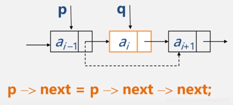 p->next = q->next;//改变删除结点前驱结点的指针域