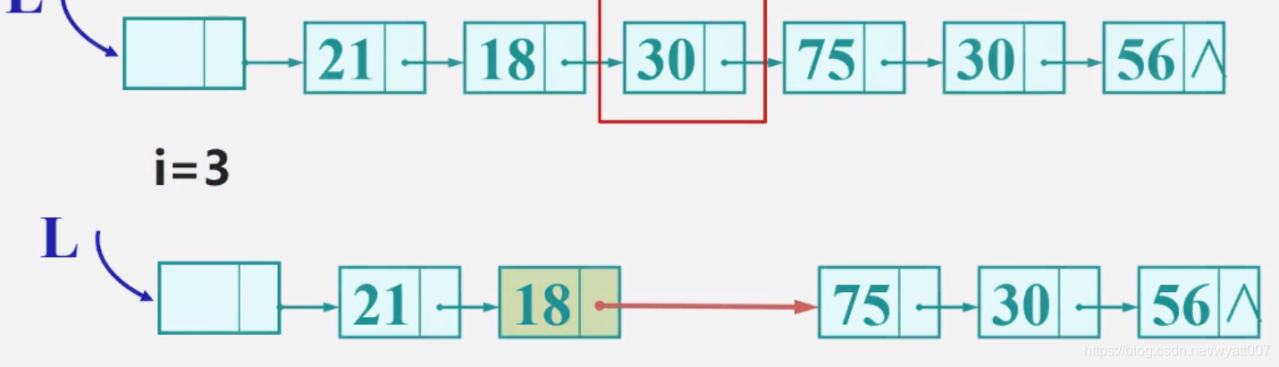 Status ListDelete_L(LinkList &L, int i, ElemType &e){//将线性表L中第i个数据元素删除
