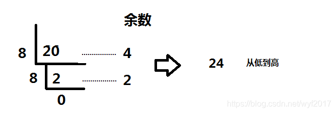 1.题目给出了 a=20这个十进制现在我们需要用十进制转八进制,这里我们采用的就是直接除8取余的方法