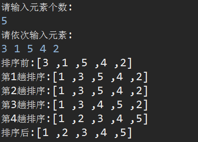 排序结果:1 3 4 5 2
