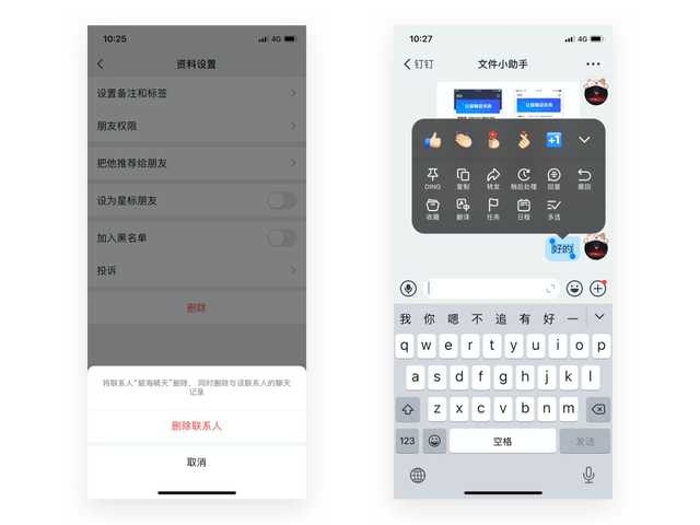例如:删除联系人二次确认提示、消息可撤回操作。