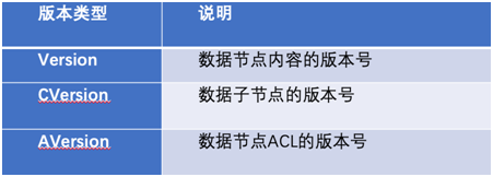 ZNode 的版本(Version)信息保存在 ZNode 的 Stat 对象中。有如下三种: