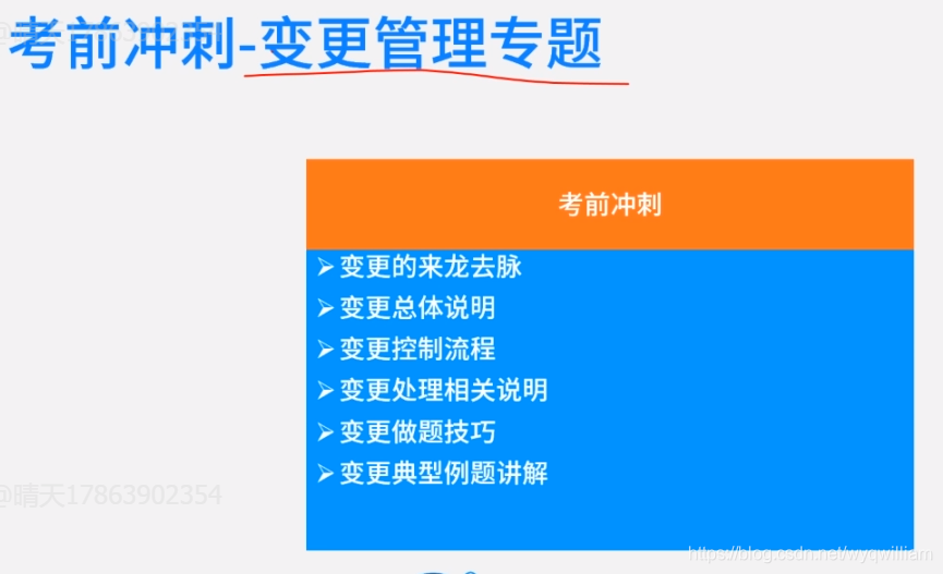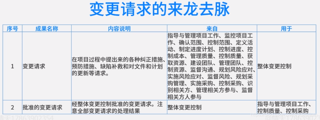 变更请求来自项目的执行过程中及监控过程中。需要采取预防措施,补救,更新等。