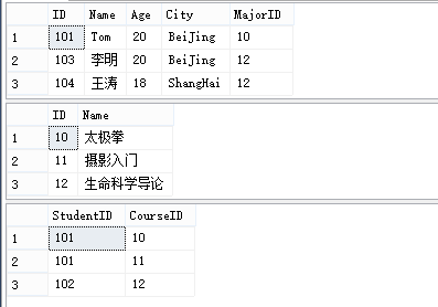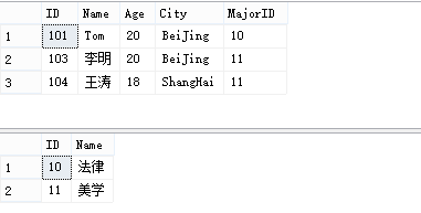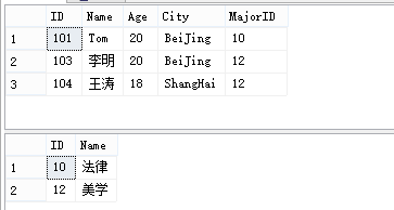 --测试用例UPDATE Majors SET ID=12WHERE ID=11SELECT*FROM Students