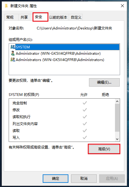步骤1:鼠标右键选中想要更改所有权限的文件或文件夹,并选择【属性】。在属性页面之下,切换至【安全】选项并点击下方的【高级】按钮。