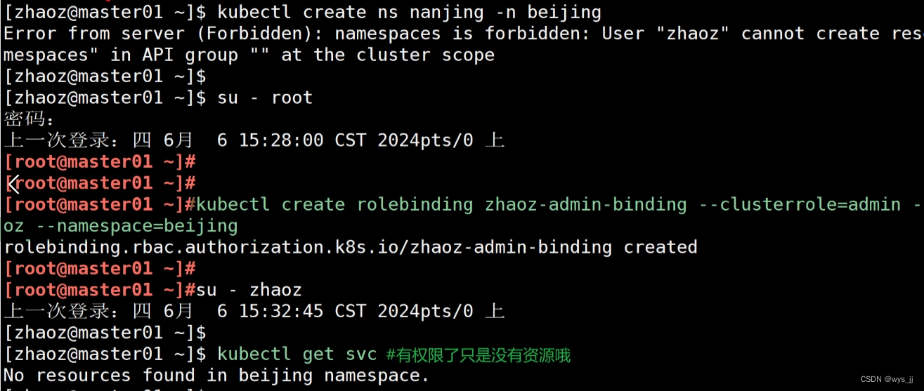 kubectl create rolebinding zhaoz-admin-binding --clusterrole=admin --user=zhaoz --namespace=beijing