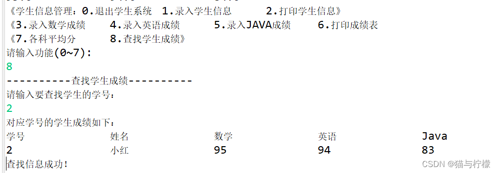 System.out.println("未找到对应学号的学生,请确认后重新输入!");