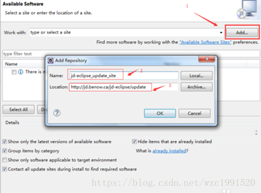 3,在对话框中点击add按钮,然后在弹出的对话框中输入名字和下载链接(因为它在下载,时间可能有点慢,多等一会),如下图所示
