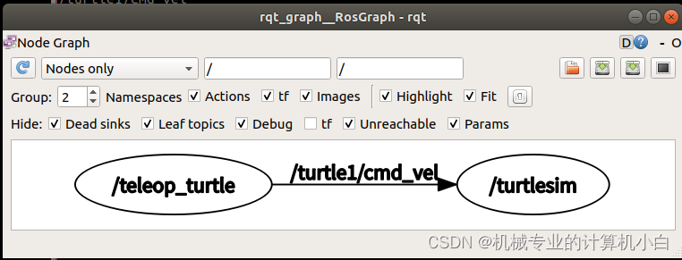 之前话题通信提到,进行通信的条件就是发布者和订阅者话题名必须相同,必须知道乌龟运动的订阅者话题名。查看所有的话题: