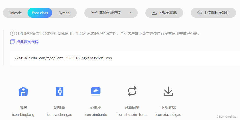 当然上述都是使用方式都是自己将所需字体图标下载之后本地使用,也可以使用线上进行字体图标的使用