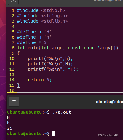 2.定义宏值为'h',请输出对应的大写